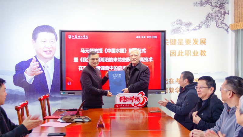 仪式现场,马元颉教授向江苏理工学院图书馆郑重捐赠荣获地图领域国家级最高奖项——裴秀奖金奖的《中国水图》。图书馆馆长孙松春代表图书馆接受赠书,并向马元颉教授颁发收藏证书,对其慷慨捐赠致以诚挚谢意。此次赠书不仅丰富了学校图书馆的特色馆藏资源,更为师生深入了解中国水文地理、开展相关领域研究提供了宝贵的权威资料。